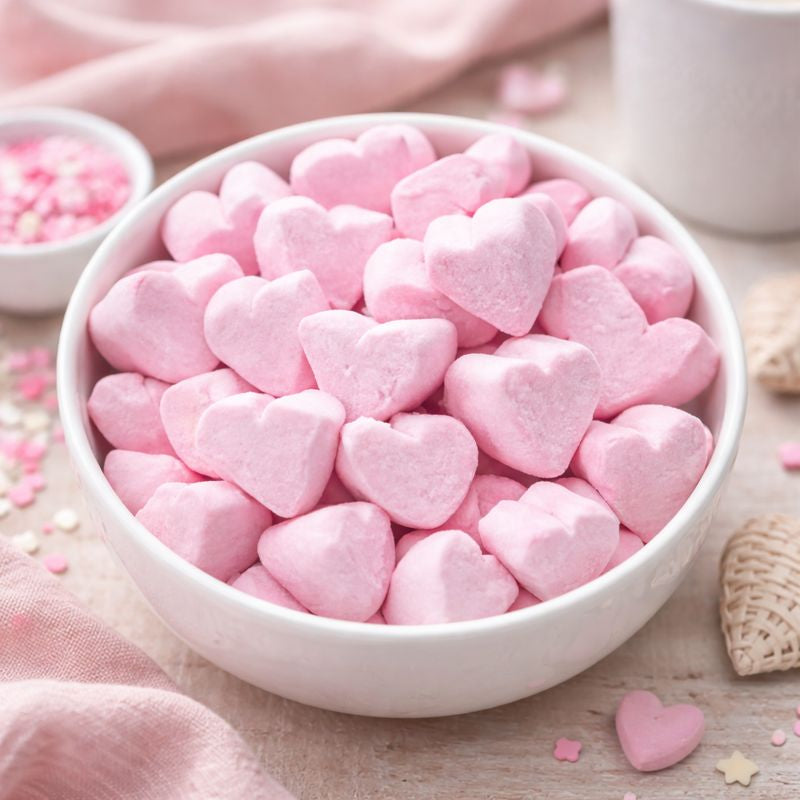 Lyserøde Skum Hjerter - 1 kg.